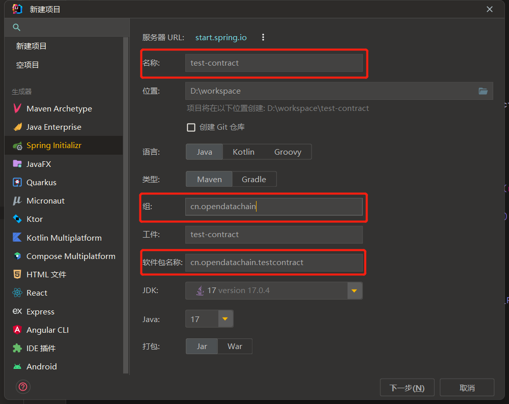 以下示例基于 JAVA 语言及 springboot starter 构建的合约引擎,IDE 使用 IntelliJ IDEA 2022.1.4 版本 推荐使用 JDK 17+(LTS)版本,下载地址:https://www.oracle.com/java/technologies/downloads/#java17